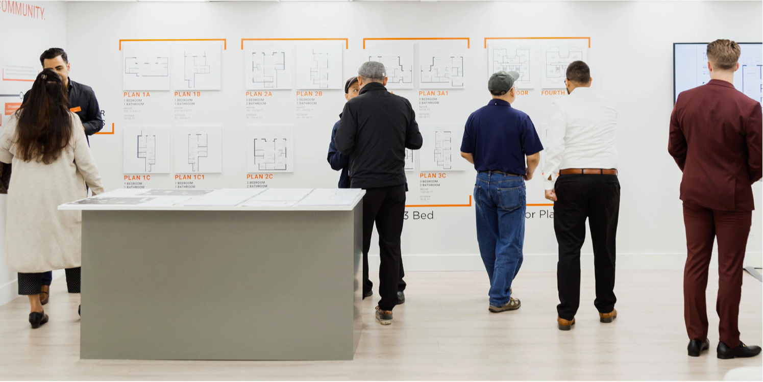 The first in-person impressions matter! Custom designed wall & window art, canvases & floorplates, as well as site signage & fence wraps all work together to impress your buyers and build the brand-awareness you need.