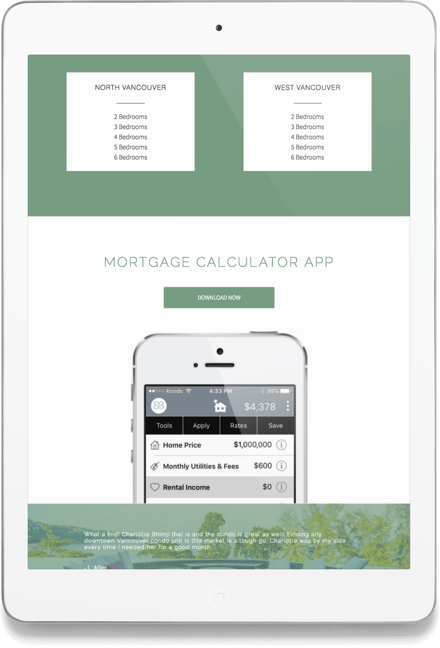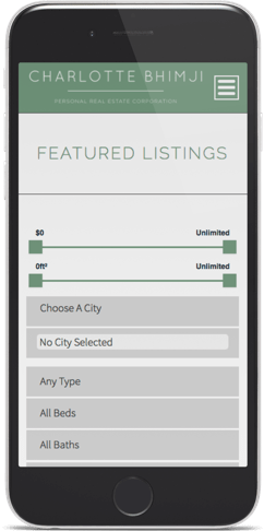 Clean & simple lines, the branding colours well displayed, and with a great pre-segmentation of all MLS® listings on the homepage for better Downtown Vancouver condos, penthouses & townhomes, or Westside detached houses, Charlotte has you covered.