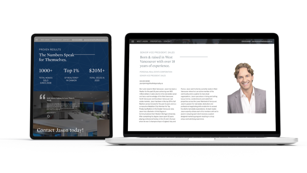 Not only beautiful & clean, but also impactful & informative is how we designed Jason’s website to showcase his extensive history in one of the crown jewels of fine real estate in British Columbia. His achievement & sales figures, as well as endorsing testimonials from clients are shown with finesse and clarity.